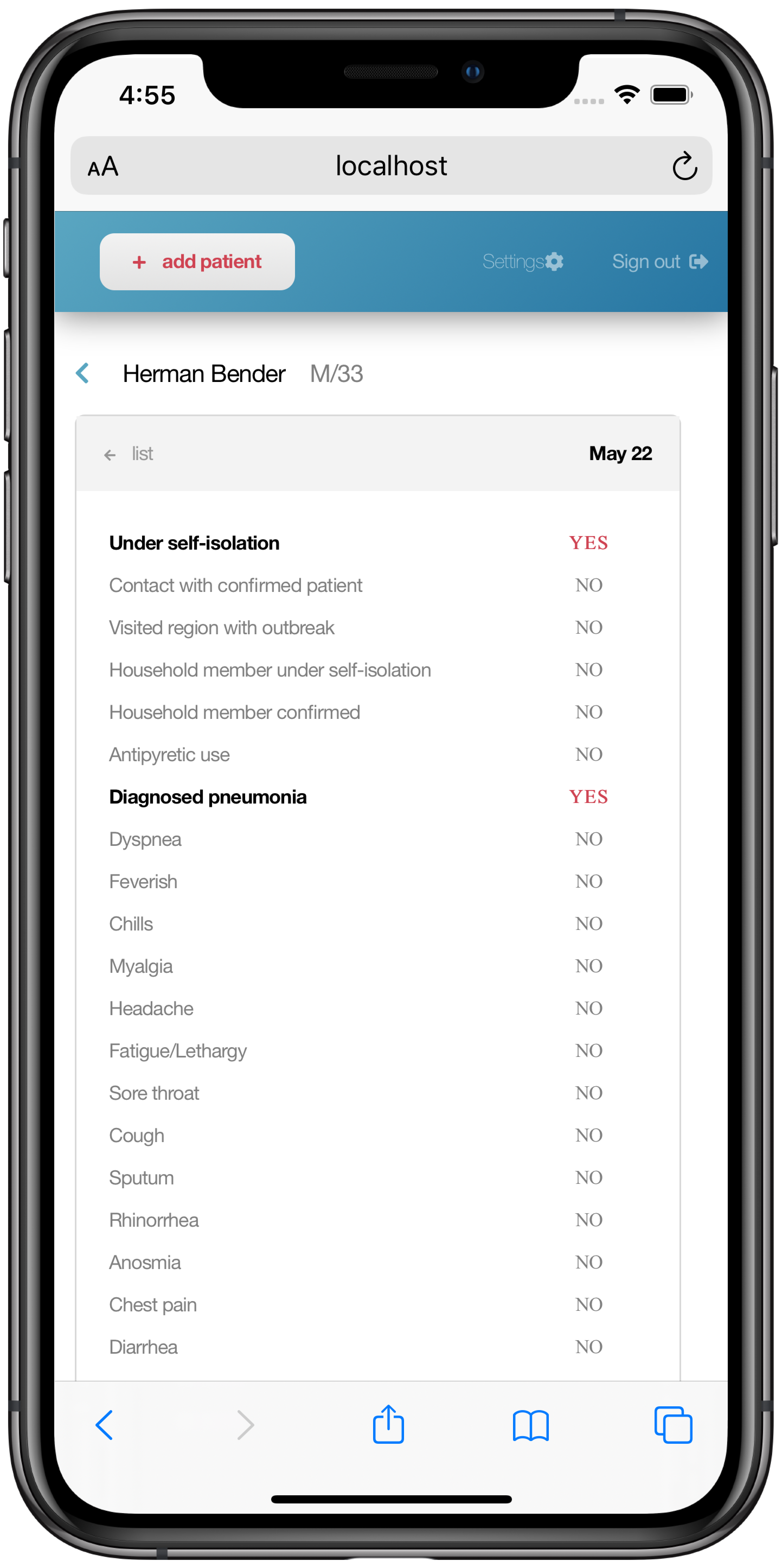 Step 2. 과거력과 증상, 그리고 체온을 입력