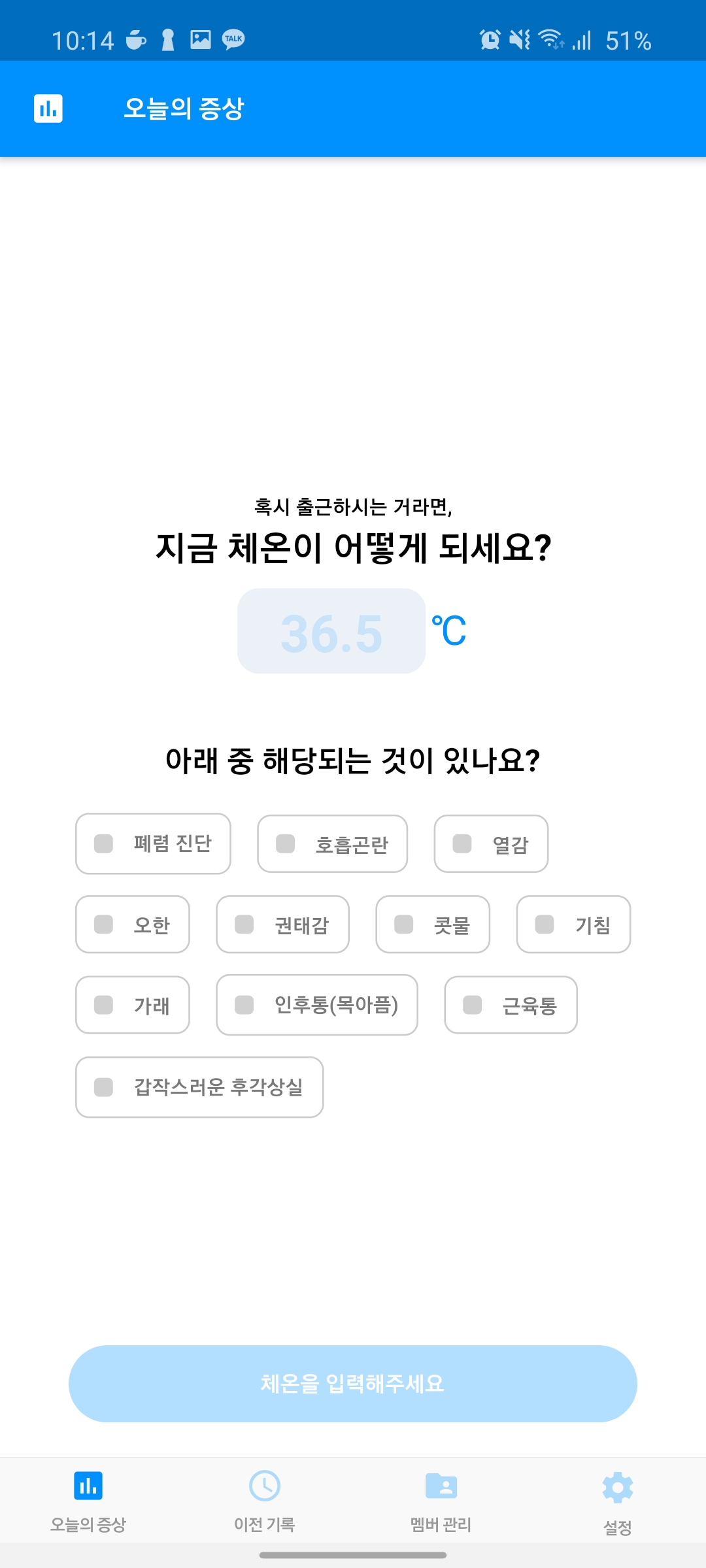 Step 2. 오늘의 체온 및 증상 입력